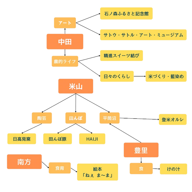 米山町・豊里町と東和町をかわいいイラストにしてご覧いただけます!